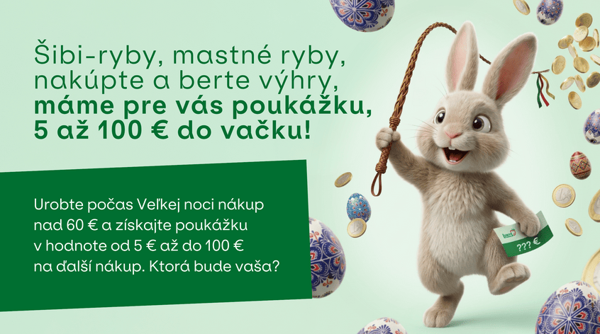 Nakúpte nad 60 € a získajte mystery poukážku, ktorá môže mať hodnotu 5 €, 8 €, 10 € alebo až 100 €. Zistite, ako funguje táto veľkonočná akcia, prečo sa oplatí nakupovať včas a čo všetko si môžete ...
