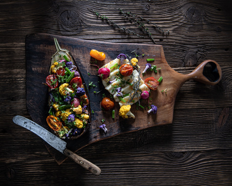 Baklažán s halloumi syrom a grilovanou zeleninou