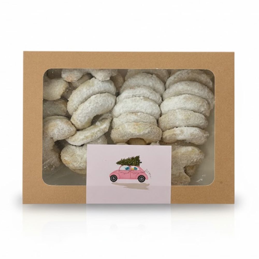 Krehké pečivo z orechového cesta poprášený štedrou dávkou práškového cukru