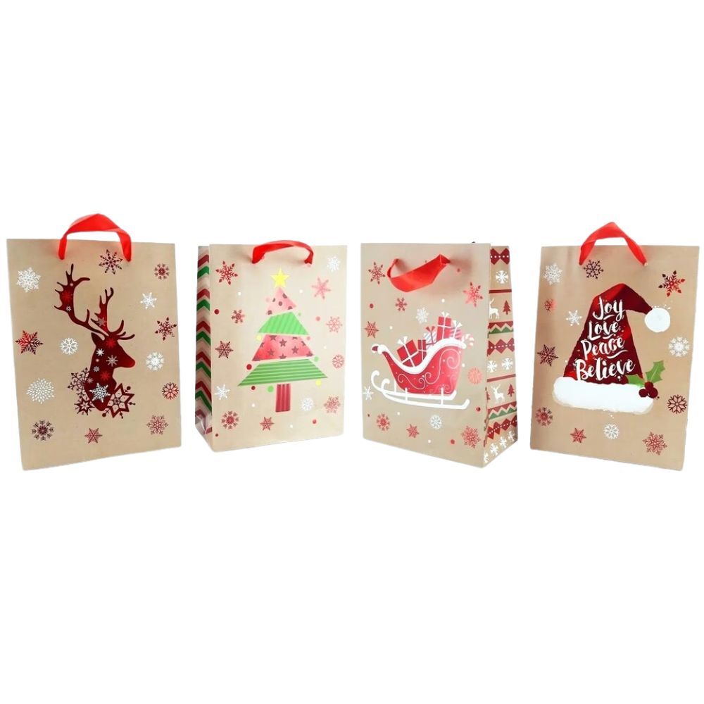 Vianočná darčeková taška Darčeková taška vyrobená z kvalitného tvrdého papiera s vianočnými motívmi, vhodná na jednoduché balenie darčekov.