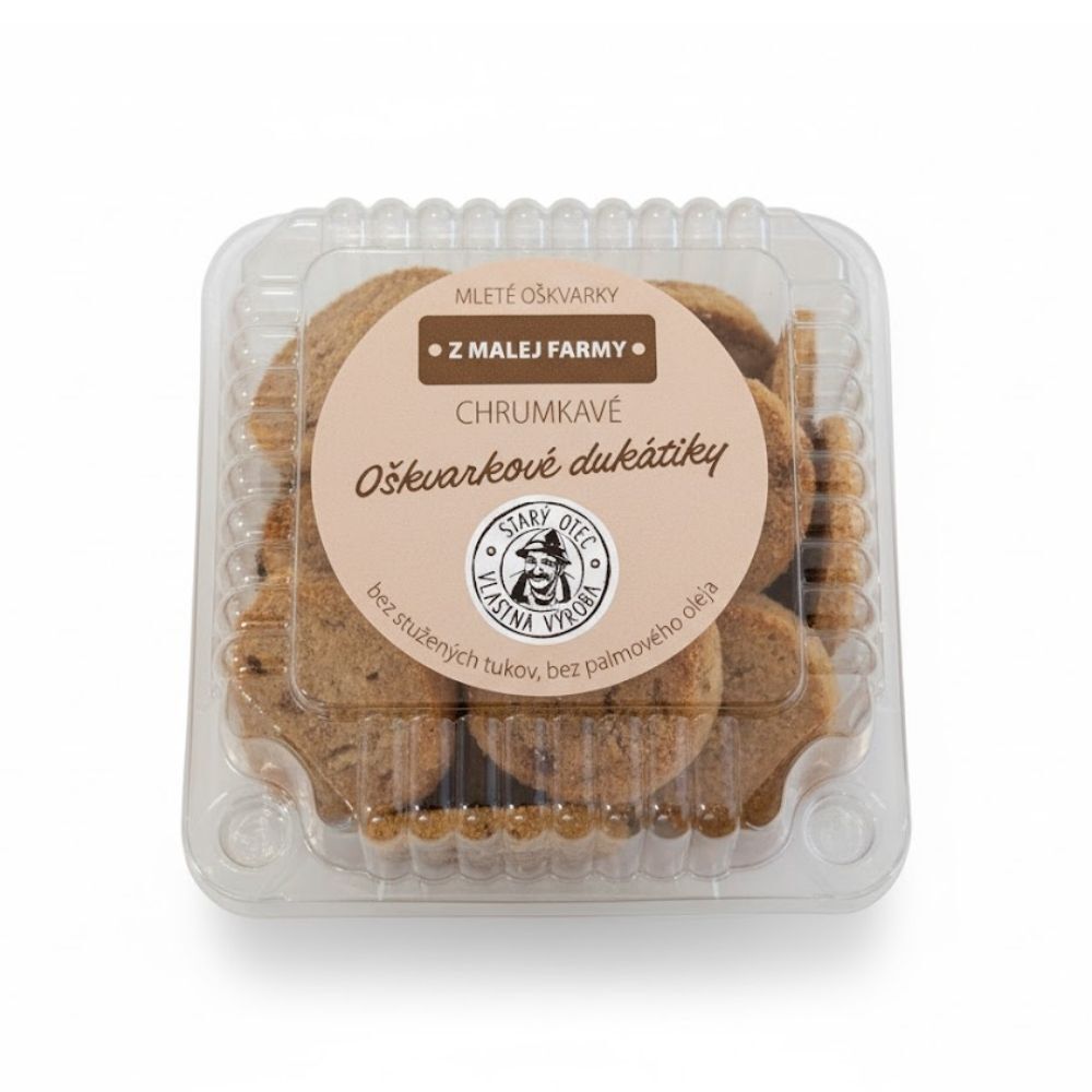 Zloženie výrobku: pšeničná múka, bravčová masť, prášok do pečiva, soľ, čierne korenie mleté, oškvarky jedmné mleté, voda, rasca, vaječná melanž (paster.vajcia, kyselina citrónová)