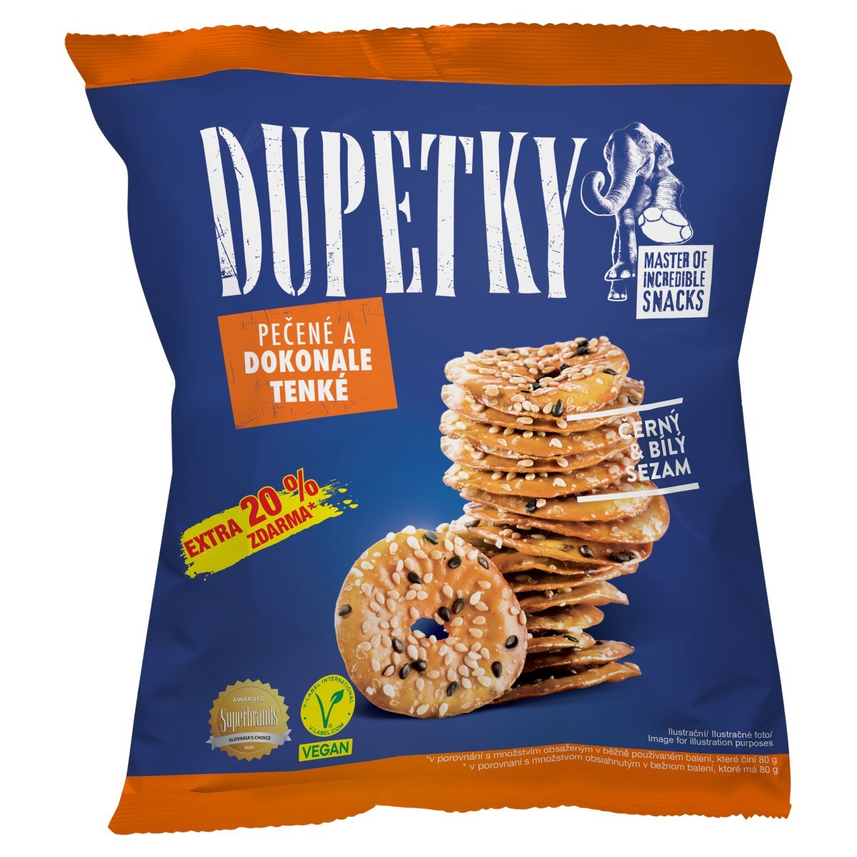 Zloženie výrobku: Pšeničná múka, Rastlinné oleje (repkový, slnečnicový - v rôznych pomeroch), Čierny a biely sezam 7,5%, Cukor, Jačmenný sladový extrakt, Jedlá morská soľ, Emulgátor: sójový lecitín, Kypriaca látka: uhličitany sodné, Antioxidant: extrakty z rozmarínu