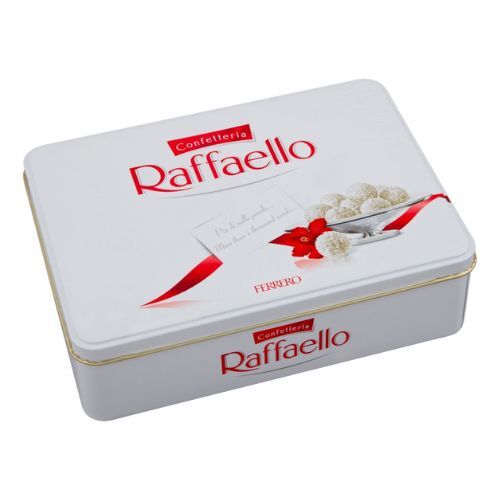Ferrero Raffaello - Chrumkavá oblátka posypaná strúhaným kokosom, s celou mandľou vo vnútri. Pralinky sú balené v exkluzívnej dóze.