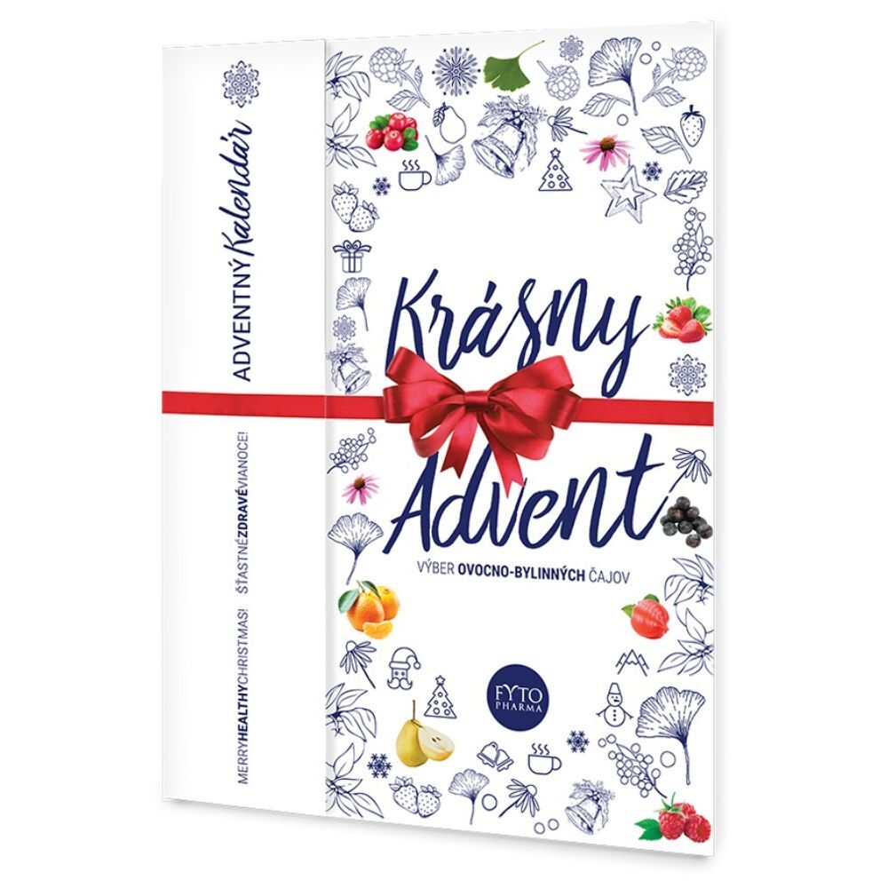 Kalendár obsahuje: Výber bylinných čajov Šípkový čaj 2 vrecká po 2g, Mätový čaj 2 vrecká po 1g, Materina dúška 2 vrecká po 1g, Zelený čaj 2 vrecká po 1,5g, Medovkový čaj 2 vrecká po 1g, Rooibos 2 vrecká po 1,5g Výber ovocno – bylinných čajov Brusnica & Guarana 2 vrecká po 2g, Granátové jablko & Acai 2 vrecká po 2g, Hruška & Ginko 2 vrecká po 2g, Malina & Rakytník 2 vrecká po 2g, Jahoda & Echinacea 2 vrecká po 2g, Mandarinka & Zázvor 2 vrecká po 2g