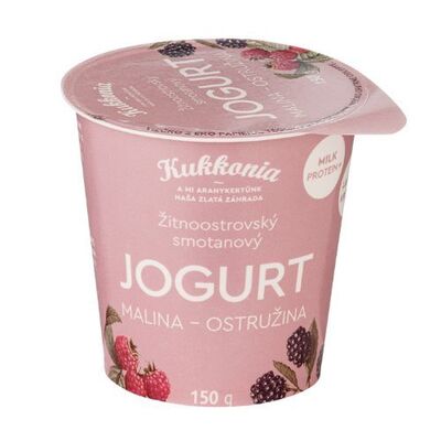 Kukkonia smotanový jogurt obohatený mliečnymi bielkovinami s príchuťou malina – ostružina. Hmotnosť/Objem balenia: 150g (0,150g)