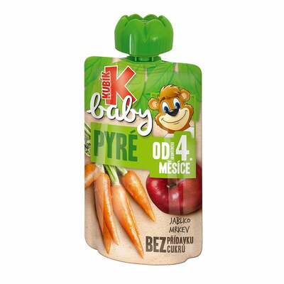 | Ovocný príkrm z jablka a mrkvy s prídavkom vitamínu C pre dojčatá a malé deti od ukončeného 4. mesiaca. Pasterizovaný. Neobsahuje lepok. Bezgluténový. |