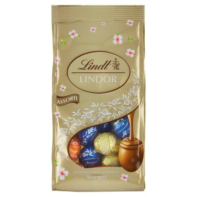 Zmes mliečnej, horkej a bielej čokolády s jemnou tekutou náplňou (44%).