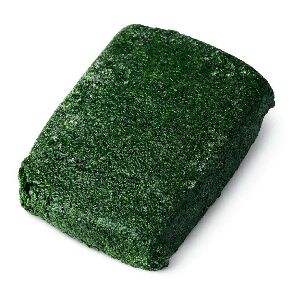Mrazený špenátový pretlak, výrobok získaný z triedenej, umytej suroviny, IQF mrazené, neobsahuje žiadne prídavné látky ani konzervačné látky.