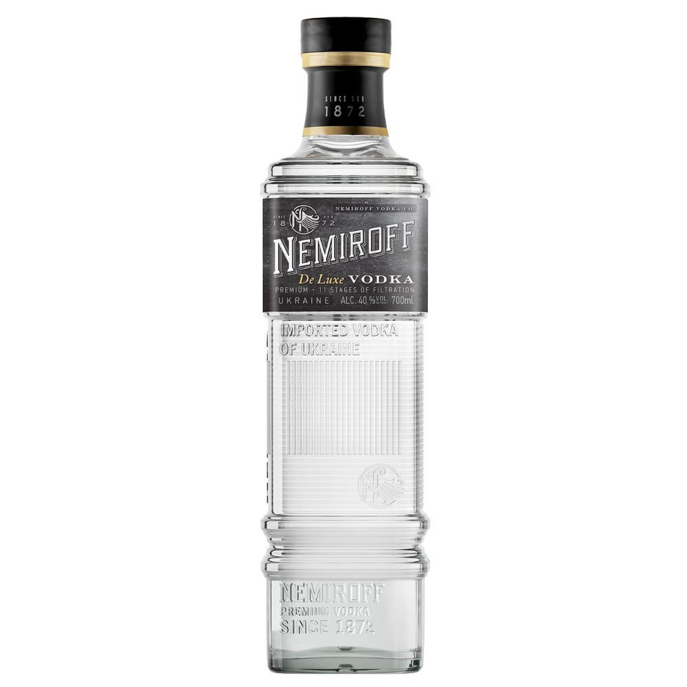 Nemiroff De Luxe Vodka je prémiová ukrajinská vodka s čistým a bohatým chuťovým profilom, vyrobená z kvalitného obilného alkoholu a čistej vody s dôrazom na tradičnú receptúru a vysoké výrobné štandardy. Výrobok prechádza viacstupňovou filtráciou (11 fáz), čo jej dodáva hladkú textúru a jemné aromatické tóny, často opisované s nádychom lipového kvetu a korenia, ideálnu na servírovanie vychladenú alebo do prémiových kokteilov.