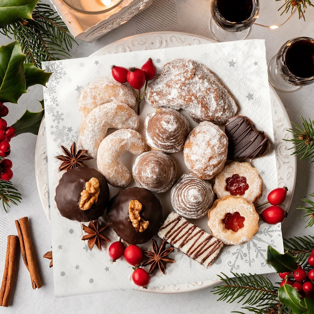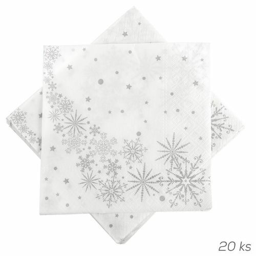 Trojvrstvové vianočné servítky tlačeným dekorom - vločky. Balenie obsahuje 20 ks.
