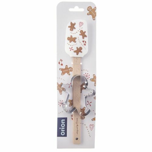 Orion Stierka 29cm s vykrajovačkou tvar: Perníček, rozmer: 9 x 7,7 x 2 cm, materiál: silikón, drevo + pocínovaný plech, farebné prevedenie: stierka v bielej farbe s motívom perníčkov. Balenie obsahuje: 1ks.