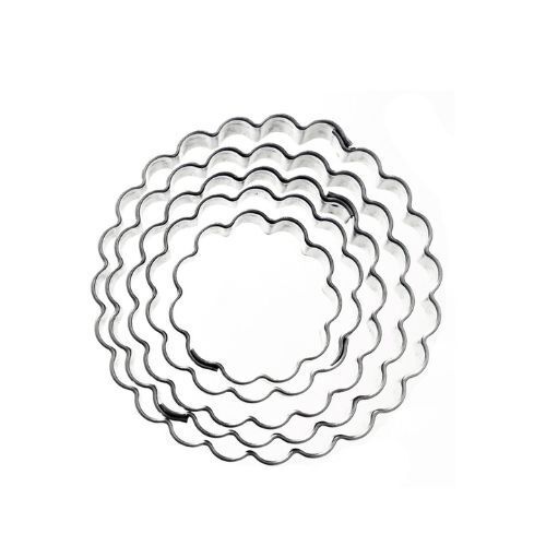 Vykrajovacie formičky KOLIESKO vlnité - súprava 5 ks. Materiál: nerez. Rozmery: pr. 2,5/3/3,5/4,5/5 cm.
