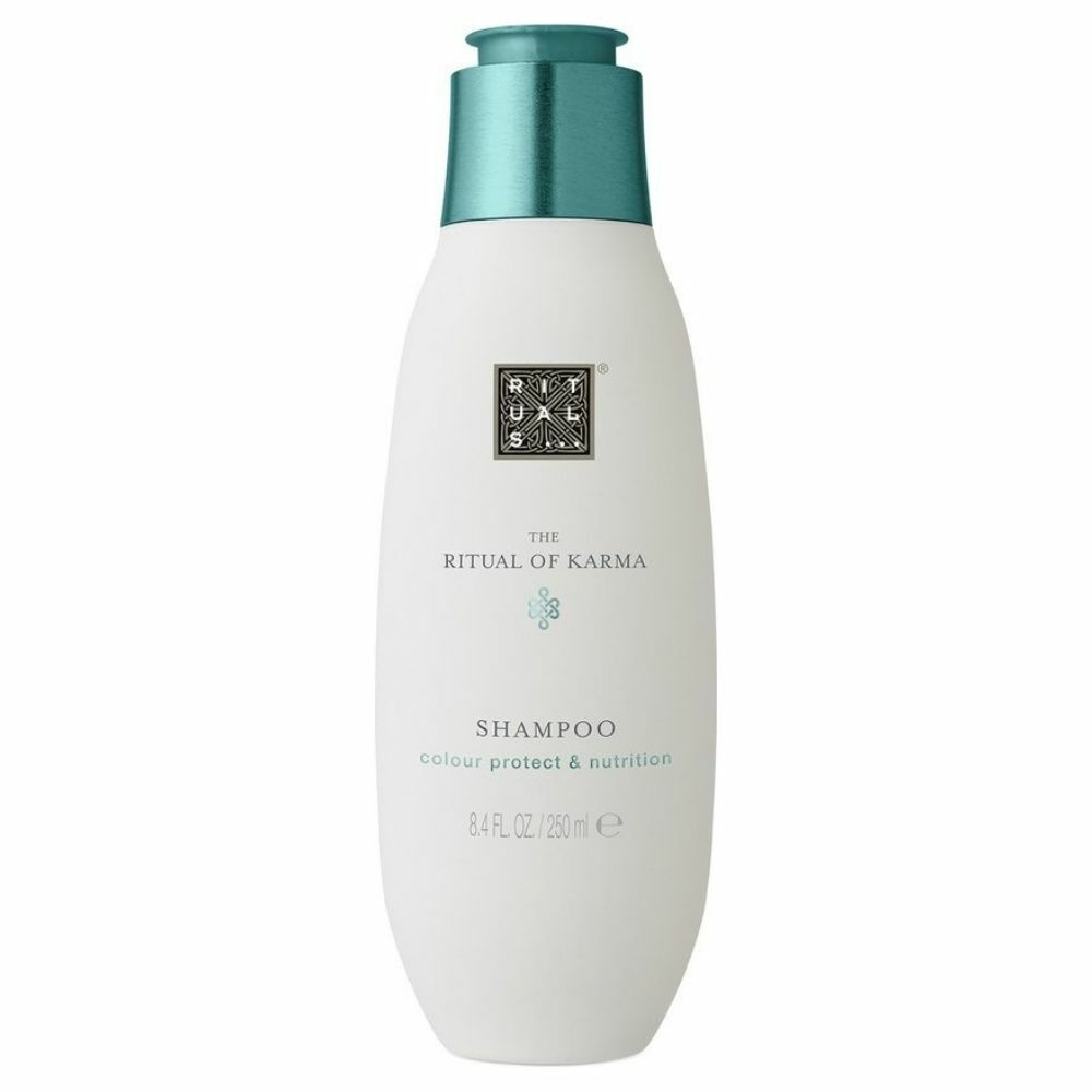 Šampón pre farbené vlasy The Ritual of Karma dodáva vlasom výživu a oslnivý lesk. Vďaka obsiahnutým látkam chráni vlasy pred škodlivými vplyvmi UV žiarenia a pomáha tak predlžovať životnosť farby. Vlastnosti: - dodáva vlasom hydratáciu, výživu a lesk - predlžuje výdrž farby vlasov - vhodné na každodenné použitie - obsahuje 90 % zložiek prírodného pôvodu Kľúčové ingrediencie: - extrakty zo slnečnicových semienok a vitamín E chránia vlasy pred UV žiarením a predlžujú životnosť farby - ryžový extrakt a makadamiový olej hydratujú vlasy Spôsob použitia: Aplikujte šampón na mokré vlasy a jemne ho vmasírujte. Potom dôkladne opláchnite vodou a následne požite kondicionér alebo vlasovú masku.