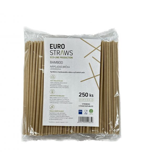 Euro Straws Bamboo Basic Ekologické prírodné biologicky rozložiteľné bambusové nápojové slamky EuroStraws sú vyrobené z bambusového vlákna a prírodných spojív bez plastov a bez chemikálií. 100% rozložiteľné, 100% biologicky odbúrateľné a kompostovateľné. Prirodzene sa rozkladajú za bežných podmienok bez vzniku mikroplastov.