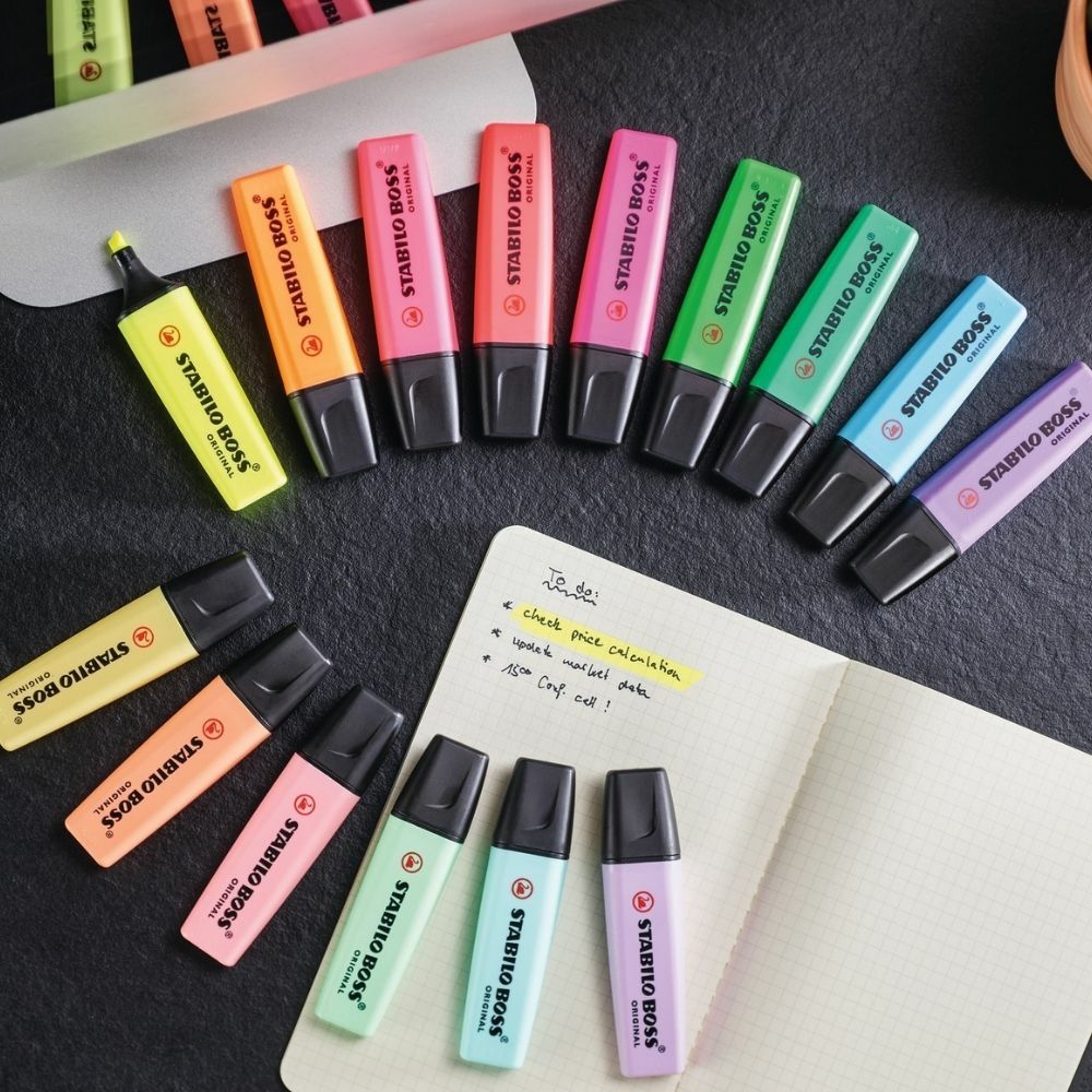 Zvýrazňovač pre všetkých, ktorí sa pri čítaní potrebujú sústrediť na to podstatné. Produkt STABILO BOSS ORIGINAL ponúka najvyššiu kvalitu spracovania, atramentu a pohodlia pri písaní. Technológia STABILO Anti-Dry-Out chráni štyri hodiny pred vysušením. Zvýrazňovač je možné doplniť náplňami STABILO BOSS.