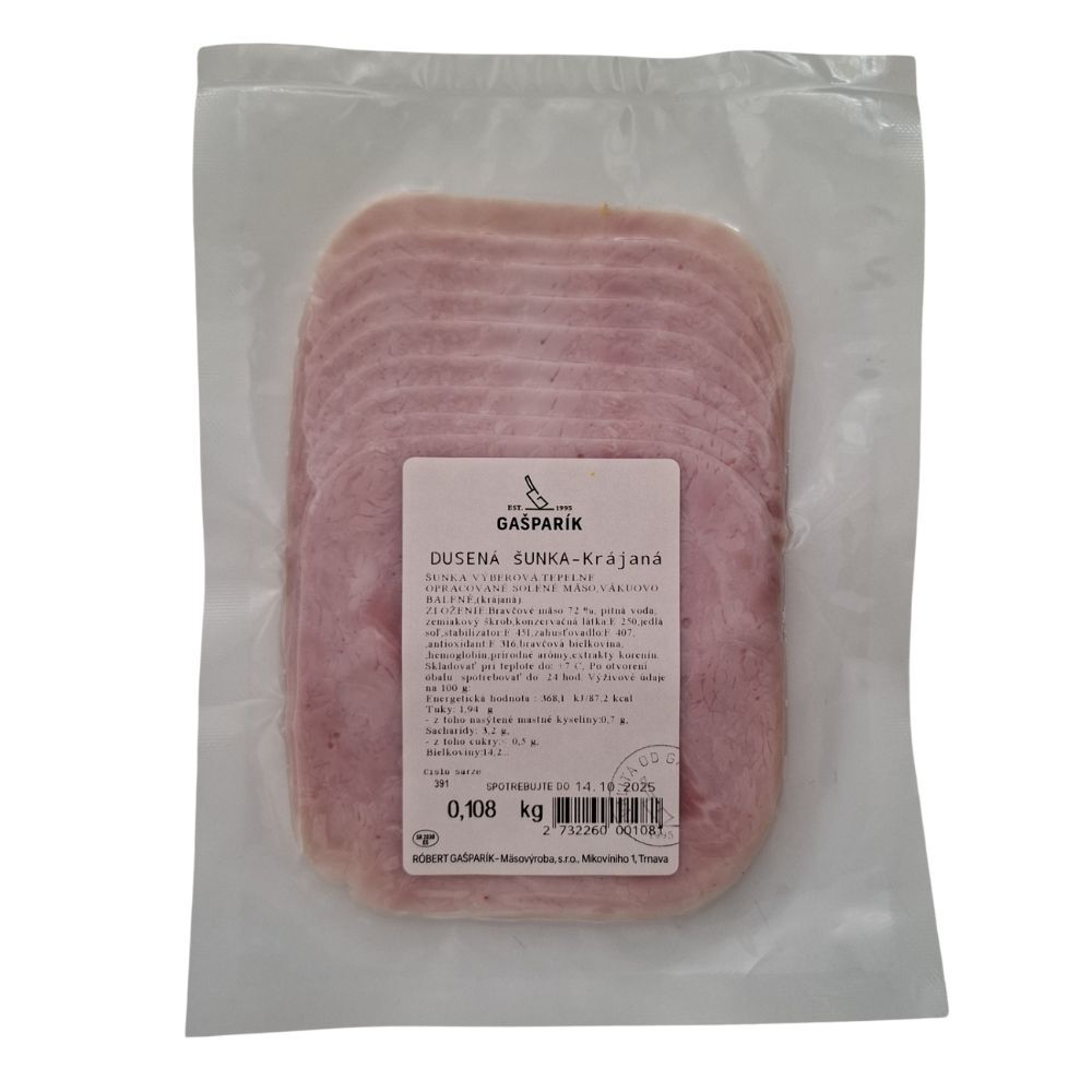 Gašparík Dusená šunka vákuovo balená. Hmotnosť/Objem: 100g.