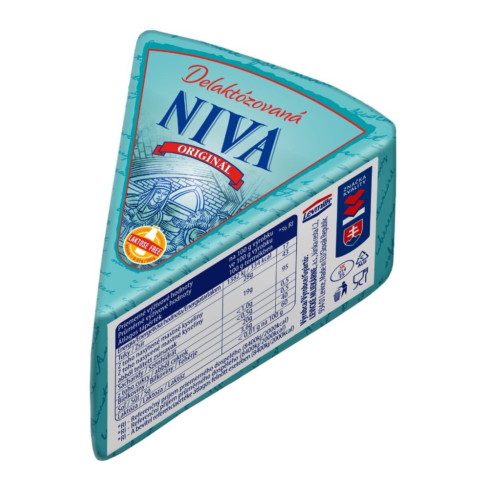 Syr NIVA ORIGINÁL DELAKTO 130 g je plnohodnotným variantom tradičného plesňového syra NIVA ORIGINÁL, s obsahom laktózy menším ako 0,01 g/100g, čím sa stáva vhodným aj pre ľudí s intoleranciou na laktózu. Hlavným benefitom je zachovanie všetkých chuťových vlastností aj textúry syra. V priereze syra sa na krémovo bielom povrchu vyníma mramorová štruktúra ušľachtilej modrastej plesne Penicillium roqueforti. Ušľachtilá pleseň spolu so špeciálnym a starostlivo riadeným zrením dáva syru jemne pikantnú až korenistú chuť s mierne slanou koncovkou. NIVA ORIGINÁL DELAKTO je prvým slovenským modro plesňovým delaktózovaným syrom