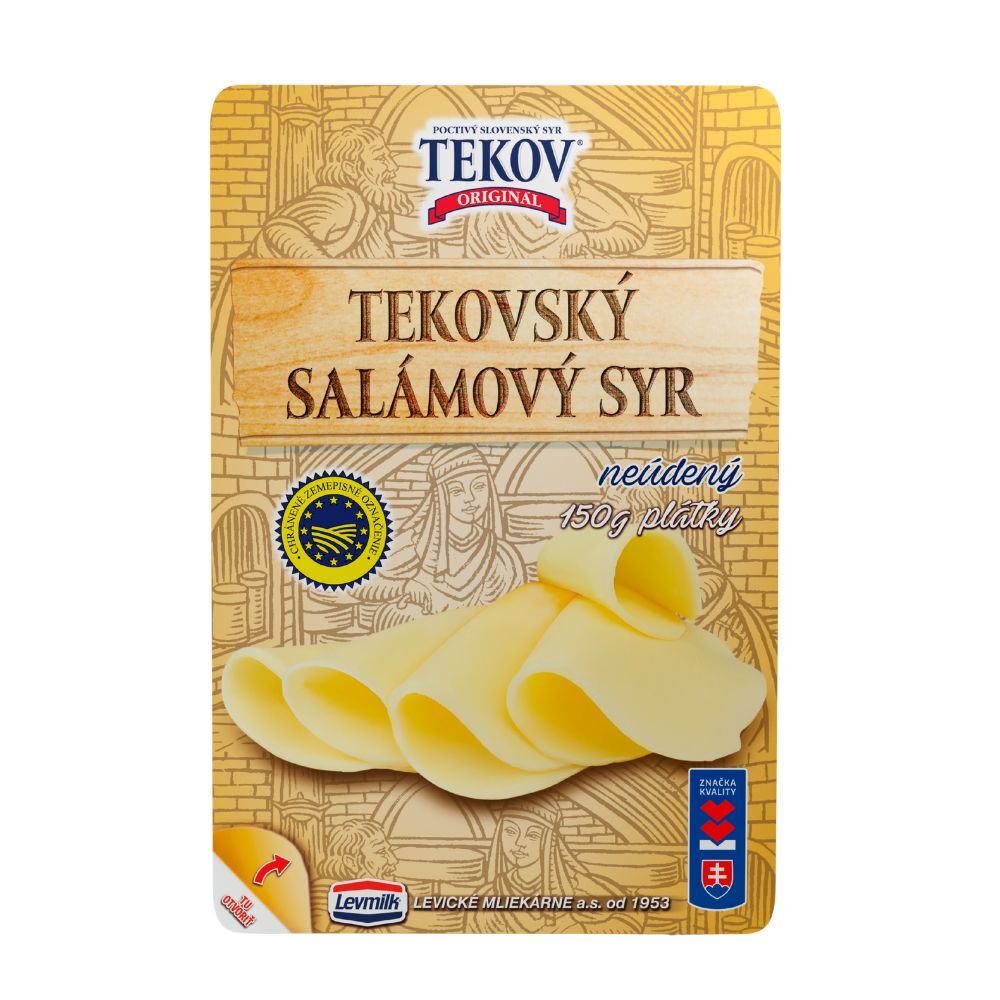 TEKOVSKÝ SALÁMOVÝ SYR je hlavným a najznámejším predstaviteľom prírodných zrejúcich syrov našej spoločnosti. Vyrába sa výlučne zo slovenského kravského mlieka, starostlivo vyprodukovaného farmármi, hlavne z oblasti Tekova. Neobsahuje žiadne rastlinné tuky, konzervačné látky a ani farbivá. Je vyrábaný klasickým spôsobom výroby s vysokým podielom precíznej ručnej práce počas celého procesu. Syrové zrno je rozhŕňané vo vaniach ručne, čo dáva syru rovnakú štruktúru. Po lisovaní sú syry starostlivo ručne vyberané, ručne opracované do finálnej podoby a uskladnené na zrenie, ktoré trvá niekoľko týždňov, počas ktorých syry získavajú svoju typickú lahodnú syrovú chuť. Týmto jedinečným postupom výroby sa Tekovský salámový syr stal nositeľom bohatej syrárskej tradície v regióne Tekov, v ktorého srdci sa aj vyrába. Tekovský salámový syr je jediný slovenský prírodný syr, ktorý je nositeľom európskeho prestížneho certifikátu „Chránené zemepisné označenie“. Tento certifikát získal pre desaťročiami overenú tradičnú receptúru, založenú na klasickom spôsobe výroby, so zachovaním vysokého podielu precíznej ručnej práce.