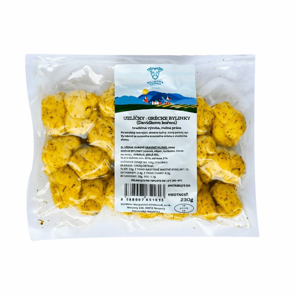 Syrové Uzlíčky Grécke Bylinky 230g Mliečna farma VÝPREDAJ