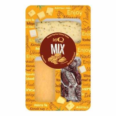• DELI Q MIX je ideálny pre tých, ktorí oceňujú kontrasty chutí. Kombinácia výrazných syrov – Gouda s korením a intenzívna Mimolette – v spojení s mini salámou s plesňou vytvára snack plný charakteru. Skvelá voľba na stretnutia, syrový tanier alebo ako gurmánsky darček.