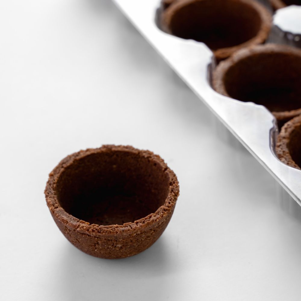 Hotová bezlepková čokoládová tartaletka pripravená k plneniu.