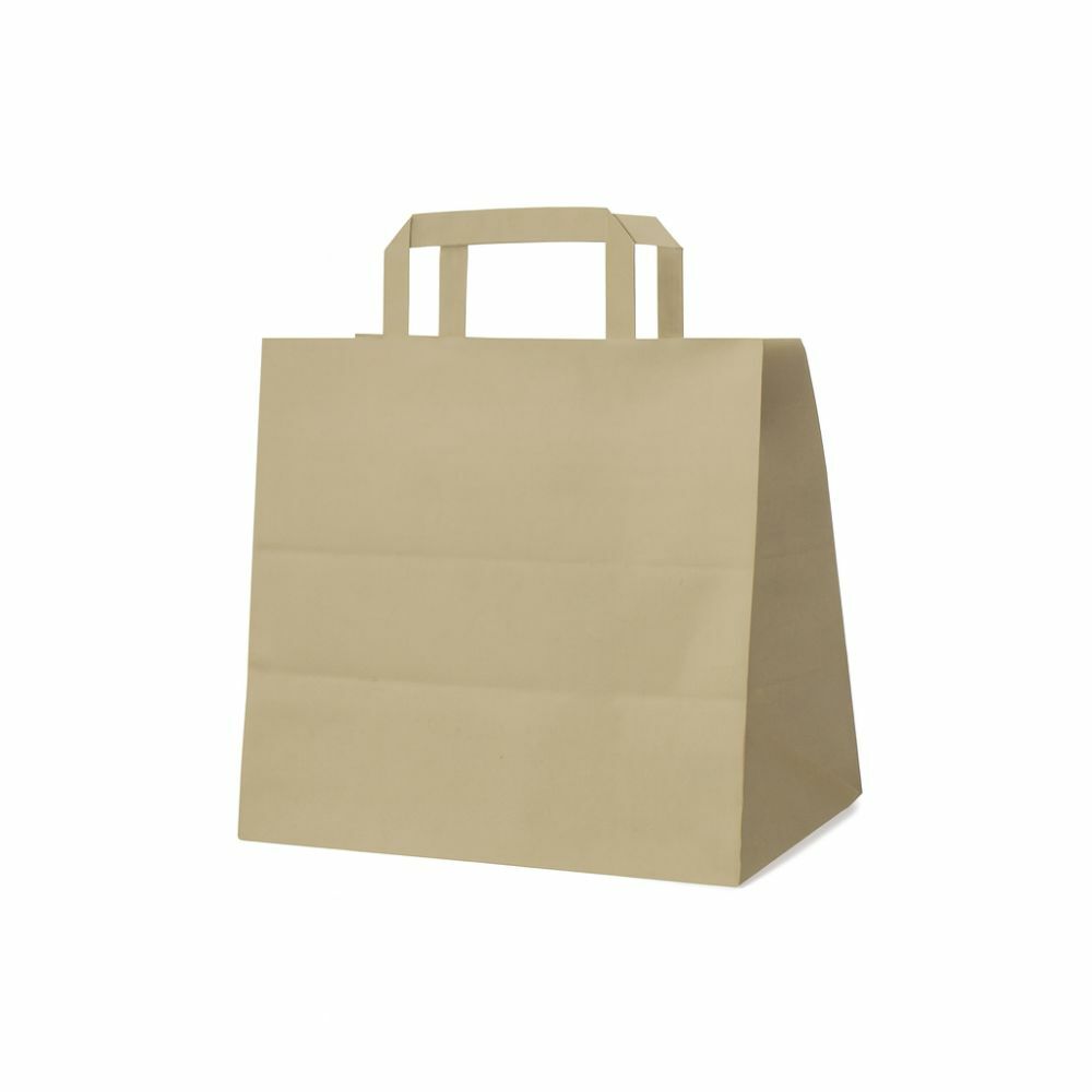 Papierová taška hnedá 26+17 x 25 cm [250 ks] – Ekonomická voľba pre balenie jedál a produktov Táto hnedá papierová taška je najpoužívanejší rozmer, ideálny na balenie potravín, jedál v obaloch, nákupov alebo darčekov. Vyrobená z kvalitného, tvrdeného papiera, táto taška je odolná a stabilná, čo ju robí vhodnou pre každodenné použitie v rôznych prevádzkach. Taška je vyrobená z 100% celulózy, ktorá je recyklovateľná a biorozložiteľná, čo ju robí šetrnou k životnému prostrediu. Balenie po 250 ks je ekonomické a ideálne pre väčšie prevádzky s vyšším objemom predaja, ako sú obchody, pekárne, cukrárne, fast foody alebo rôzne podujatia. Výhody produktu: Ekologický materiál: Vyrobené z 100% celulózy, recyklovateľné a biorozložiteľné, šetrné k životnému prostrediu. Odolnosť: Taška je pevná a stabilná, vhodná na balenie rôznych produktov a potravín. Univerzálne využitie: Ideálna na balenie potravín, nákupov, darčekov, suvenírov a ďalších produktov. Ekonomické balenie: Balenie po 250 ks je cenovo výhodné pre prevádzky s vyšším objemom predaja. Šetrná k životnému prostrediu: Taška je ekologicky lepená, vhodná na kontakt s potravinami a recyklovateľná. Využitie: Túto tašku využijete na balenie jedál v obaloch, potravín, nákupov, darčekov a ďalších produktov v obchodoch, pekárňach, cukrárňach, na jarmokoch, festivaloch a pri cateringových akciách. Balenie obsahuje: 250 kusov hnedých papierových tašiek (26+17 x 25 cm).