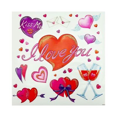 Okenná dekorácia Valentín Okenná nálepka sa nalepí na čistý povrch bez použitia lepidla. Obrázok elektrostatický priľne. Fólie možno použiť opakovane. Na výber 3 druhy Rozmery: 30 x 30 cm.
