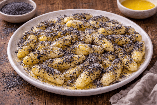 Zemiaky uvarte v šupke, olúpte a prelisujte. Pridajte časť soli, vajcia, krupicu, hrubú múku a vymieste na cesto. Z cesta vytvarujte šúľančeky oválneho tvaru dlhé 3 cm a hrubé 0,5 cm. Šúľance vložte do hrnca s vriacou osolenou vodou a uvarte domäkka. Sceďte a pomastite polovicou roztopeného masla a posypte mletým makom.